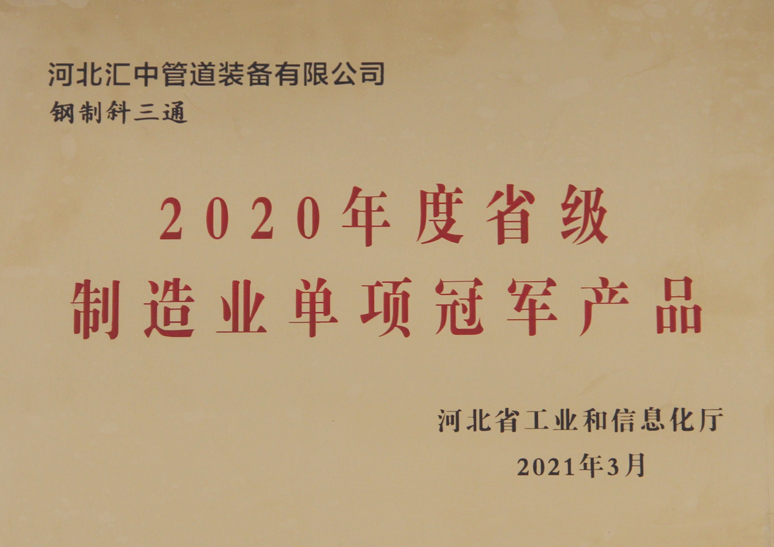 汇中斜三通获评“河北省制造业单项冠军产品”